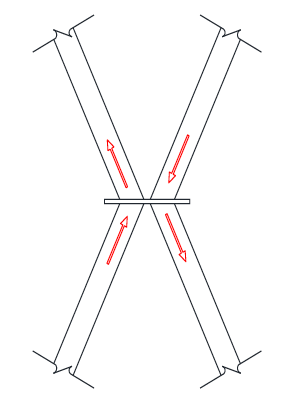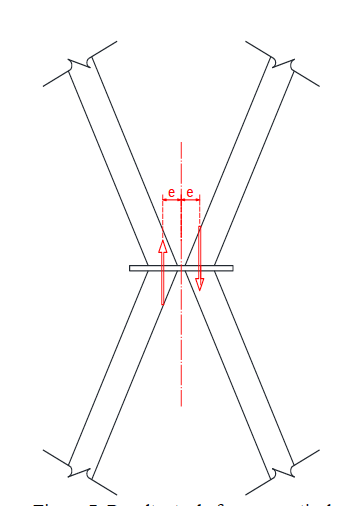 El diseño tradicional de las tridilosas genera excentricidad en los nudos que es muy relevante en cuanto a la resistencia de los elementos, por lo que resulta deseable modificar el diseño para permitir nudos en los que las barras concurran concéntricamente. Dentro de las alternativas de diseño de estos nudo se pueden emplear dos placas de conexión unidas en forma de “X” que conecten a las barras ranuradas, conectando cada placa a cuatro barras. Este tipo de conexión también permitiría mejorar la unión soldada limitando los esfuerzos en éstas [5][6].