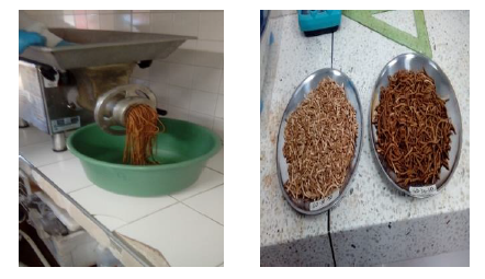 Las muestras de tierras diatomáceas recicladas fueron suministras por la fábrica de cerveza ubicada en Bucaramanga (Colombia). Dicha muestra, fue sometida a secado a temperatura ambiente, luego a tratamiento térmico a 800 °C en mufla eléctrica Ney- Vulcan®. Posteriormente se le realizó una caracterización usando espectroscopía de absorción atómica (Perkin Elmer PinAAcle 900H). El proceso de conformado de los pellets fue por extrusión (ver figura 1) mediante el equipo CITalsa®, donde se usó como aglutinante carboximetilcelusosa (CMC) y fécula de maíz. La humectación se llevó siguiendo la norma ASTM D424- 59, teniendo en cuenta que la plasticidad recomendada para ser extruido por el equipo CITalsa® es del 80%.