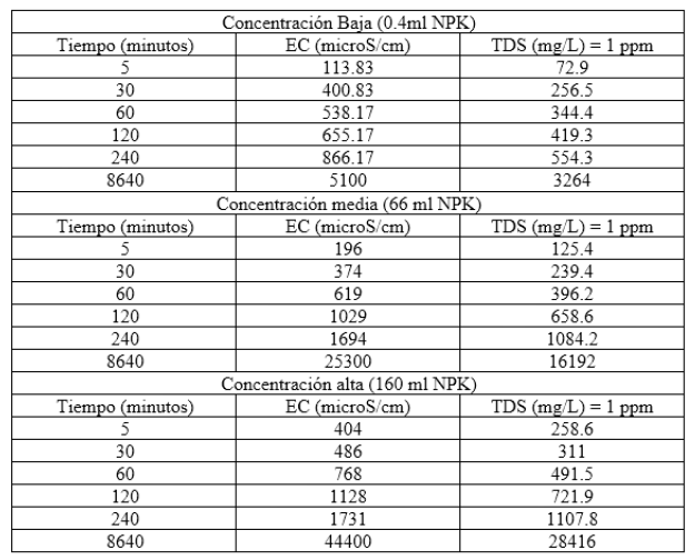 Palabras clave:tierras diatomáceastierras diatomáceas,macronutrientes NPKmacronutrientes NPK,conductividad eléctrica (EC)conductividad eléctrica (EC),sólidos totales disueltos (TDS)sólidos totales disueltos (TDS).