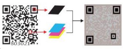 La anterior no es la única forma de asegurar un código QR donde se implementa el uso de colores, también se pueden usar técnicas de marca de agua como se ilustra en la figura 3, cuya lectura se realiza mediante infrarrojo como indican [18] sí se adicionan características ópticas de K, teniendo en cuenta que K es la única forma de ser visible el infrarrojo o lo que se denomina renderizado, una de las cuatro tintas CMYK, puede absorber el infrarrojo.