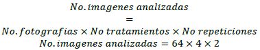 A cada agricultor, se le realizó una observación directa, en condiciones reales de la labor; se registró el ciclo de trabajo por medio de video y se dividió cada 8 segundos para obtener las posturas asumidas por los campesinos durante la ejecución de la tarea de recolección en condiciones reales y sobre los cultivos. Se obtuvo en promedio 64 fotografías de cada trabajador por tratamiento (256 imágenes en total), que corresponde a las posturas adoptadas por el campesino durante la ejecución de la tarea de recolección de Mora de Castilla. Cada grupo de imágenes fue analizado de forma independiente por dos grupos de expertos (Fisioterapeutas con especialización en salud ocupacional) en la aplicación del Sistema de Análisis de Trabajo O.W.A.S [14]. El resultado de la valoración obtenida por cada grupo fue promediado para obtener el valor de riesgo postural en cada combinación postural. De esta forma, el estudio finalmente analizó 512 imágenes en total como lo muestra la ecuación.