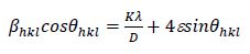 Plotting the term βcosθ with respect to 4sinθ for the preferred orientation peaks, the strain and crystallite size can be obtained from the slope and y-intersect of the fitted line. The values of D and ε estimated from the UDM model are summarized in Table 1.