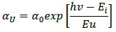 It is well known that the presence of structural defects generates states of tails of bands that participate in photons absorption processes which can be evaluated through the calculation of the absorption coefficient near the band edge (αυ) that has an exponential dependence on photon energy and Urbach energy [26] given by: