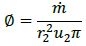 (31)Debido a que el fluido de trabajo es compresible al ser aire ideal, es decir, con una composición química de 71% nitrógeno, 29% oxígeno y sin humedad [16], y se esperan cambios drásticos en la velocidad del fluido al incrementar la sección transversal, se hace necesario modelar el fluido como compresible. Las propiedades del flujo se relacionan con el momento angular por medio de un balance de masa sobre cada sección, el cual toma la forma de la ecuación 32.