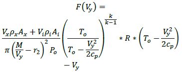 La ecuación 32 debe ser iteró usando el método de la secante presentado en la ecuación 33 con el fin de obtener el valor de la velocidad y con esta determinar las propiedades termodinámicas y geométricas de la sección transversal.