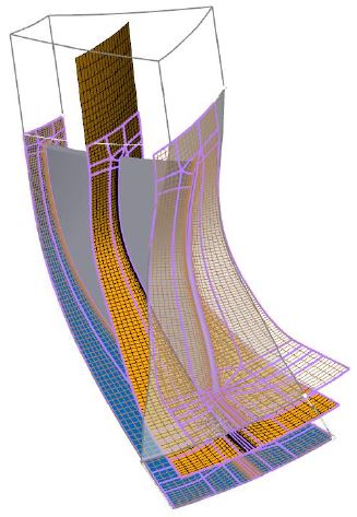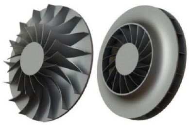 Para generar el modelo con las especificaciones calculadas se usa ANSYS BladeGen, complemento con el cual se puede obtener un modelo CAD de las aspas, a las cuales se les agrega la cubierta superior “shroud” e inferior “hub”. Haciendo uso de SolidWorks 2019. La figura 3 muestra un render del modelo final obtenido.