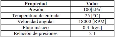 En la tabla 1 se presentan las propiedades generales con la cuales debe contar el impulsor, solo se permiten modificaciones a la velocidad angular para este caso de estudio, debido a que de esta forma se disminuyen considerablemente las iteraciones que se deben realizar para obtener una solución. Tampoco se incluyen restricciones de tamaño, temperatura o resistencia de materiales.