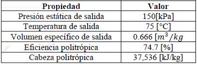 Determinar en una etapa temprana de diseño propiedades como eficiencia y cabeza isentrópicas es necesario, para lo cual se computaron las propiedades termodinámicas de salida de acuerdo con las necesidades, es decir, relación de presiones, temperatura de salida, flujo másico y el estado termodinámico de entrada. Este proceso determinó si se requería más de 1 etapa de compresión; ya que no es recomendable un trabajo mayor a 40[kJ/kg] por etapa [4].