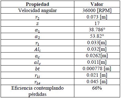 En el Handbook de compresores centrífugos [10] se muestra que la velocidad angular del compresor adquiere valores entre 15000-20000 [RPM]; sin embargo, se afirma que estos valores pueden ser sobrepasados, como lo muestra Gutiérrez [11] en su recopilación para determinar las pérdidas, donde todos los compresores analizados superan el rango previamente descrito.