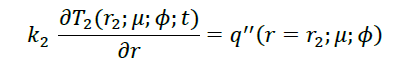 (4)siendo, 𝑞′′(𝑟=𝑟2;𝜇;𝜙) el flujo de calor por unidad de área que genera la resistencia eléctrica sobre un hemisferio del casquete externo. Este flujo puede depender de las otras dos coordenadas (𝜇;𝜙).