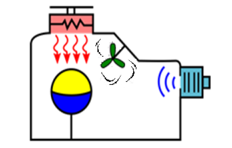 El sistema físico: este consiste de un par de esferas sólidas concéntricas ubicadas en un aplicador multimodal. Éste cuenta a su vez con un agitador metálico que mejora la distribución del campo electromagnético. La esfera interna posee propiedades termoeléctricas de tal forma que absorbe eficientemente la energía que transportan las microondas (a 2450 MHz) y la transforma en energía térmica (calor). Igualmente, esta esfera posee una alta conductividad térmica y eléctrica, y valores razonablemente altos de calor específico y densidad. Por otro lado, la esfera externa, que es transparente a las microondas, es un buen conductor térmico y posee valores relativamente altos de capacidad calorífica y densidad. Los valores numéricos de esas propiedades aparecen en la sección de resultados. La figura 1 ilustra el arreglo experimental que se modela.