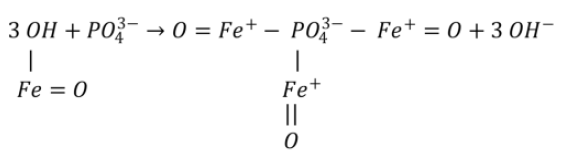 Con respecto al fósforo, este suele estar distribuido en el mineral de hierro, en forma de apatita (Ca5(PO4)(F,Cl,OH), a lo largo de los bordes de grano de los óxidos de hierro, incrustado en el cuarzo y, en pequeñas cantidades, dentro de la red de los óxidos de hierro [9]. La existencia del fósforo en la goetita se debe a que, previa deshidratación del hidrato férrico para formar goetita, un grupo hidroxilo superficial es remplazado por un ligando de fosfato como se muestra en la reacción ecuación (1), lo que implica un mecanismo de adsorción de fosfatos [21].