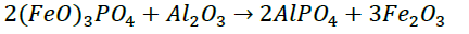 El tratamiento térmico del mineral de hierro venezolano produce la transformación de goetita a hematita como resultado del proceso reductivo de deshidroxilación en el que se rompen los enlaces OH- de la estructura y/o se pierde agua según la ecuación (2). El grupo espacial ortorrómbico Pbnm de la goetita origina un nuevo grupo espacial R3c, romboédrico, que es el de la hematita. Durante la transformación, además, la hematita permite que se libere el fósforo en un compuesto soluble como, por ejemplo, el fosfato de aluminio (AlPO4) según se indica en la ecuación (3). Sin embargo, es posible que se formen otros compuestos de esta clase a partir del manganeso o del magnesio contenido en el mineral [11,12,18, 19, 23].
