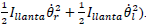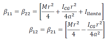 (4)Partiendo de la existencia de una inercia causada por el ensamble de las llantas y el motor (𝐼𝑙𝑙𝑎𝑛𝑡𝑎), con un coeficiente de fricción entre este ensamble y la superficie por donde se desplaza el robot (𝛽) - idéntico este parámetro en la llanta derecha y en la llanta izquierda, se puede definir la energía cinética total como la suma de los aportes en desplazamiento traslacional