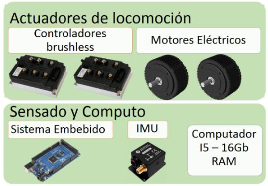La Figura 6 muestra el hardware utilizado para la experimentación, los actuadores del sistema de control son los motores eléctricos del robot CERES acoplados a llantas rin 14 de un automóvil, la sensórica se conforma de la unidad de medida inercial IMU Spatial Navigation la cual integra un GPS y permite conocer los estados del robot.
