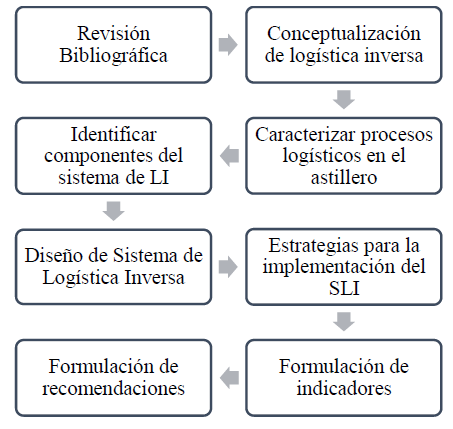 La estructura del presente artículo se basa en una búsqueda sistemática en literatura científica que consideró la logística inversa y su relación con la sostenibilidad, lo que permitió establecer características base del Sistema de Logística Inversa. Posteriormente, se analizaron los procesos logísticos al interior del astillero y se procedió a diseñar el Sistema de Logística Inversa presentado acompañado de estrategias que apoyan su implementación y una propuesta de posibles medidas de desempeño para controlar y garantizar un adecuado funcionamiento del sistema. Finalmente, se presentan recomendaciones para su posible implementación.