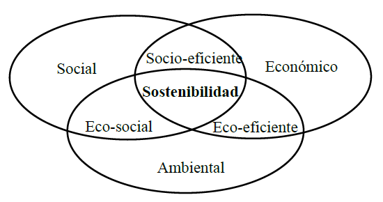 Para alcanzar el desarrollo sostenible, es necesario lograr un balance entre lo social, económico y ambiental como se muestra en la Figura 2. En [19] indican que la extensión de la cadena de suministro para incluir cuestiones como la reutilización, el reciclado y la renovación, añade un nivel adicional de complejidad al diseño de la cadena de suministro existente, además de un nuevo conjunto de potenciales problemas estratégicos y operativos, que a su vez puede aumentar los costos en el corto plazo; por lo que la obtención de la sostenibilidad solo se da mediante la inversión en términos de ofertas laborales que aporten al desarrollo de la sociedad alrededor de la empresa y procesos más amigables con el medio ambiente [20].