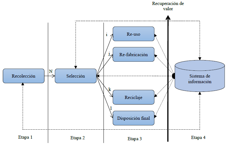La cuarta etapa propuesta, se refiere a la retroalimentación y evaluación del SLI esta etapa debe estar soportada en un sistema de información que contenga los datos generados desde la misma recolección de los materiales, la selección y los procesos de recuperación. El flujo de información de este sistema debe ser bidireccional, ya que su principal propósito es retroalimentar al SLI, permitiendo identificar fallas para tomar decisiones que las corrijan o prevengan futuros problemas.