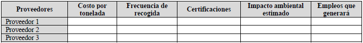 Esta estrategia se asocia a la obtención de un ambiente externo a la empresa que facilite la adopción del sistema de logística inversa. En [38] se ha enfatizado la importancia de asociarse con proveedores para la reducción de costos ya que el SLI requiere la selección de proveedores de servicios de reciclaje minimicen costos [39]. Para la selección de proveedores de servicios de reciclaje o disposición final de materiales peligrosos, se sugiere el uso de herramientas como el AHP [40], donde se consideren diferentes proveedores y los criterios propuestos en la Tabla 5; hacer uso de este método permite una toma de decisiones que en el corto plazo refleja beneficios económicos y minimiza el impacto ambiental en el largo plazo. Lo anterior se da, siempre y cuando los criterios definidos dentro de la organización se centren en estos dos objetivos.