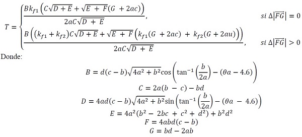 (11)Como resultado de las iteraciones se configuraron los siguientes valores de los parámetros: a=60mm, b=40mm, d=60mm, c=130mm, u=122mm, kf1=113 N/mm, Kf2=200N/mm que presentaron un factor de correlación del 98%, 𝑅2=0.98.