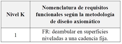 FR ≡ Deambular en superficies niveladas a una cadencia fija. Para satisfacer este requisito funcional, se propuso el parámetro de diseño.