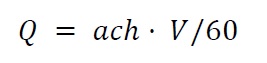 (10)Donde, 𝑄 está dado en m3/min, V representa el volumen del espacio (m3) y ach es el cambio de volumen de aire por hora del espacio estudiado (m3/h·m3).