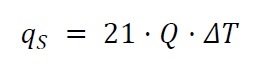(11)Donde 𝑞𝑆 es la carga de calor sensible (W), 21 (J·min/m3·K·s) proviene del producto de la densidad del aire, el calor específico a 15°C por 1min/60s, 𝑄 es el flujo de aire en (m3/min) y 𝛥𝑇 es la diferencia de temperatura interior y exterior (K).