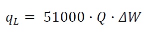 (12)Donde 𝑞𝐿 representa la carga de calor latente (W), 51000 (J·min/m3·s) es el producto de la densidad del aire por el calor latente de vapor, 𝑄 la tasa de flujo de aire (m3/min), 𝛥𝑊 es la relación de humedad específica del aire interior menos la relación de humedad del aire exterior (K𝑔 𝑎𝑔𝑢𝑎/K𝑔 𝑎𝑖𝑟𝑒 𝑠𝑒𝑐𝑜).