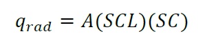 (3)Donde 𝑞𝑟𝑎𝑑 es la carga de refrigeración por radiación (W), 𝐴 es el área de la ventana (m2), 𝑆𝐶𝐿 es el factor de carga de enfriamiento (adimensional), 𝑆𝐶 representa el coeficiente de sombreado (adimensional). Este último se obtiene a partir de la ecuación 4: