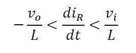 (8)Replacing the switching function derivative (6) into (8) leads to restriction (9), which defines the minimum and maximum derivatives of the current reference ensuring the reachability conditions. It must be noted that those limits are the minimum and maximum derivatives of the inductor current, which are caL.ulated from (1) with u = 0 and u = 1, respectively.
