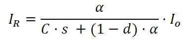 (17)Taking into account that the main objective of this controller is to limit the slew-rate of the battery current, the design of 𝛼 is performed using equation (17). The design considers the worst-case scenario for a load perturbation, i.e. the fastest transients possible, which corresponds to a step current with amplitude |Io| (i.e. Io = |Io| /.). Replacing the Io = |Io| /s into equation (17), and applying the inverse Laplace transformation, the time-domain waveform of the current reference given in (18) is obtained.