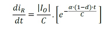 (18)The derivative of the current reference is reported in (19), which must be limited to constrain the slew-rate of the battery current. Since the exponential term of (19) decreases with increments in t, the maximum value of (19) occurs at t = 0 as it is reported in (20).