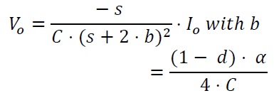 (26)For the worst-case scenario for a load perturbation, defined as Io = |Io| /s, the time-domain waveform of the load voltage (27) is defined as follows: