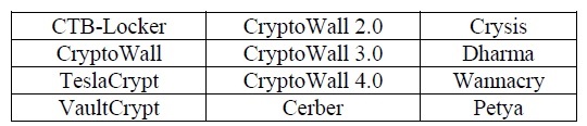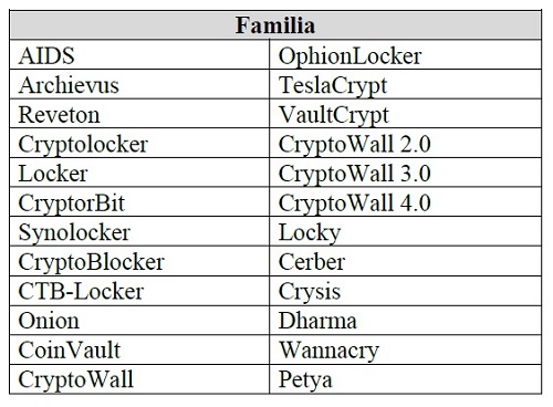 Se identificación los diferentes ransomware, sus comportamientos en los sistemas y definir el nivel de impacto que este puede ejercer en dicho sistema. Para lo cual, se tomaron 24 familias de Ransonware (tabla 2) cuya actuación se da en los sistemas Windows, dichas familias se seleccionaron de múltiples fuentes de acuerdo con la evolución del malware [19], [20], [21], [22], esto es, aquellos malware que a través del tiempo han tenido una evolución más relevante e impactos importantes.