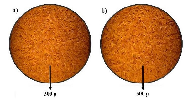 Se obtuvieron imágenes de las partículas de guadua usando el equipo estereoscopio NIKON SMZ800 (Figura 2). El producto de la molienda fue tamizado en un tamiz rotatorio RO-TAP de W.S Tyler en donde las partículas de bambú fueron escogidas usando zarandas de 500 µm y 300 µm. En las partículas de guadua se realizaron mediciones de humedad en balanza de humedad Mettler Toledo HB 43 verificando que el porcentaje de humedad contenido fuese del 3 %.