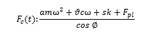 To solve equations (10) and (11) the equation defining the term Fc representing the contact force experienced by the mechanism is introduced. See equation (12).