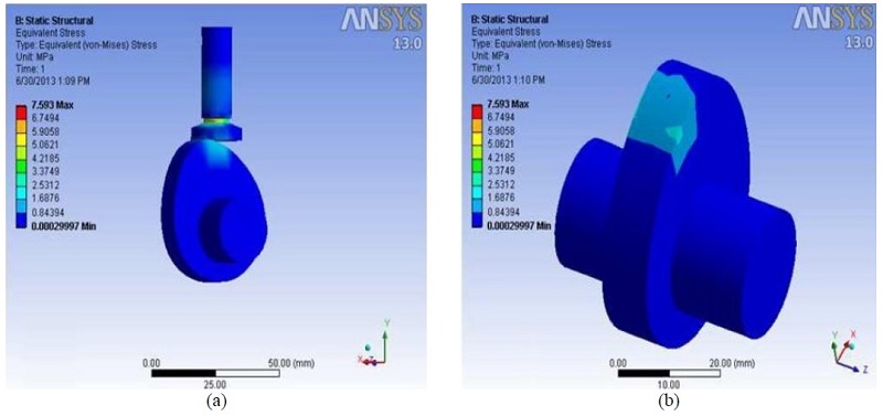 According to the cam classification, the stresses experienced by the cam are also classified. In axially short cams there is flat stress while axially long cams experience flat deformation stress [3]. The study model fulfills the characteristic corresponding to an axially short cam, in addition, since the follower is of translation, the mechanism experiences a slip during the rotation of the cam, this slip represents an additional stress overall [16].
