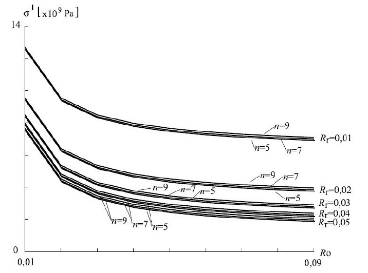 The figure 4 presents the variation of the main stress in relation to the radius of the roller and the primary circle of the cam in the area that experiences greater stresses, it can be seen an inverse relationship between the magnitude of stress and the radius of the primary circle of the cam.