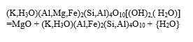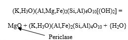 Según la ecuación 4, la única forma de acuerdo al análisis de DRX de la figura 4, el magnesio presente en la illita se unió con un Oxigeno para formar el compuesto (Periclase) de la siguiente forma: