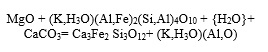 En el caso de la Illita (K,H3O)(Al,MG,Fe)2(Si,Al)4O10[(OH)2,(H2O)] (ver figura3), estaba presente en solo un solo 2.5% de la escoria, y este compuesto en el análisis de DRX de la figura 4, no se encontró. A continuación, se muestran las posibles reacciones que pueden dar lugar para que se formen los compuestos mostrados en la figura 4.