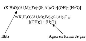 (4)De acuerdo a estudios previos, se ha demostrado que la illita en medio altamente alcalinos el H2O desaparece de la estructura cristalina, dada la cantidad de reacciones simultáneas propician la liberación de gases que se puedan producir.