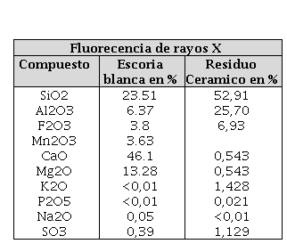 En este estudio se utilizó escoria blanca y escoria negra provenientes de la empresa Sidenal S.A (Colombia). En la Figura 1 se muestra su distribución granulométrica, el RC proveniente de desechos de teja de arcilla. La caracterización de estos materiales se realizó mediante Fluorescencia de Rayos X, su composición química se resume en la tabla 1, como agregado fino se utilizó el residuo cerámico con un tamaño de grano 150 µm y absorción del 7%.