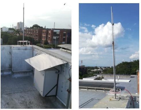 Se estableció la terraza del edificio de la Sede regional UIS ubicada en esta ciudad como lugar de instalación del equipo de medición, debido a que su ubicación al encontrarse en el casco urbano brindaba mayor seguridad y fácil acceso, lo cual, no implicaba costos adicionales en el desplazamiento en el momento de realizar seguimiento, verificación y/o mantenimiento al equipo de medición; adicionalmente, se contaba con servicios de energía eléctrica e internet, indispensables para su funcionamiento. En la Figura 1 se muestra el equipo finalmente instalado.