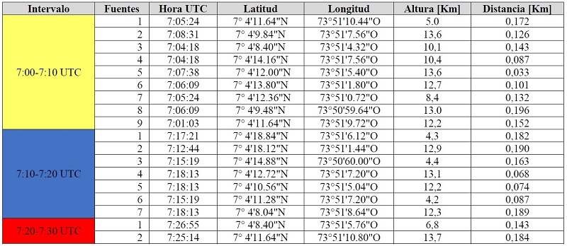 Dado que es difícil discriminar si las mediciones anteriores (Tabla 3), corresponden o no a impactos directos, se analizaron los registros obtenidos de la red DABEIBA-LMA instalada en la ciudad de Barrancabermeja en el año 2018 en asocio entre la Universidad Politécnica de Cataluña, la Universidad Industrial de Santander y la empresa Keraunos. El radio de cobertura de la red LMA es de 45 km, esto comprende los municipios de Barrancabermeja y Yondó en el Magdalena Medio. La red cuenta con 6 sensores, uno de ellos instalado en la sede UIS Barrancabermeja y los demás en campos petroleros. Cada estación de medición está compuesta por un sistema de antenas de recepción de radio frecuencia, unidad de digitalización y almacenamiento de información y un sistema de sincronización de tiempo GPS de alta resolución. Este sistema utiliza una técnica de tiempo de llegada para detectar fuentes de emisiones electromagnéticas en el rango de muy alta frecuencia (60 – 66 MHz) debido a procesos de disrupción eléctrica (en inglés breakdown- process) durante propagaciones de líderes del rayo. Como resultado de la localización de dichas fuentes, la reconstrucción tridimensional y temporal de estructuras de rayos durante el ciclo de vida de una tormenta eléctrica es posible permitiendo identificar la posible trayectoria y puntos de impacto del rayo [21, 22, 23].