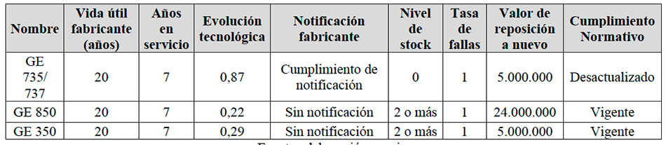 Para obtener los datos requeridos, como lo establece el paso c), se consultó la información proporcionada por el fabricante con relación al equipo y las bases de datos de la empresa (algunos valores se asumieron). Los datos precisados para estimar la probabilidad de obsolescencia son presentados en la Tabla 7.
