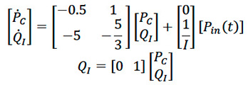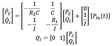 El sistema de espacio de estados y la ecuación de salida para el flujo de entrada son [12]: