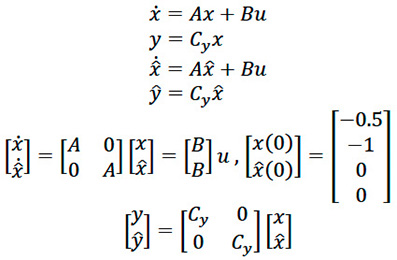 (9)Además, se asume que las condiciones iniciales del sistema no son conocidas y que el sistema que se tiene es estable. Inicialmente se verifica que el sistema sea observable. Esto se hace obteniendo el rango de la matriz de observabilidad el cual debe ser completo [13].