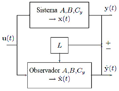 La solución al anterior problema es entonces usar la información adicional que proporciona el lazo cerrado [6], así se puede verificar en qué medida la salida estimada coincide con la salida real, comparando 𝑦 = 𝐶𝑦𝑥 con 𝑦̂ = 𝐶𝑦𝑥̂, donde el error en la salida está dado por [7]: