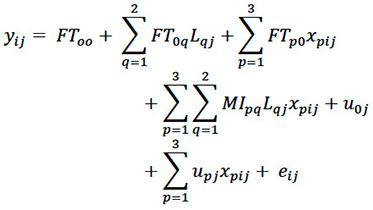 De acuerdo con la ecuación 8, para la selección de las variables predictoras incluidas en el modelo lineal multinivel definitivo, se procedió a analizar parámetros utilizando una estructura de covarianzas de tipo identidad, según se muestra en la Tabla 2.