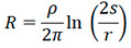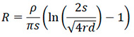 Tierra suplementaria con varillas: Son varillas de cobre o aleaciones de este que hacen contacto con el terreno, dispuestas de forma vertical (Figura 6) cuyos parámetros son resistividad, radio, profundidad de enterramiento y número de electrodos que conforman el sistema de puesta a tierra (ecuación 3) [8].